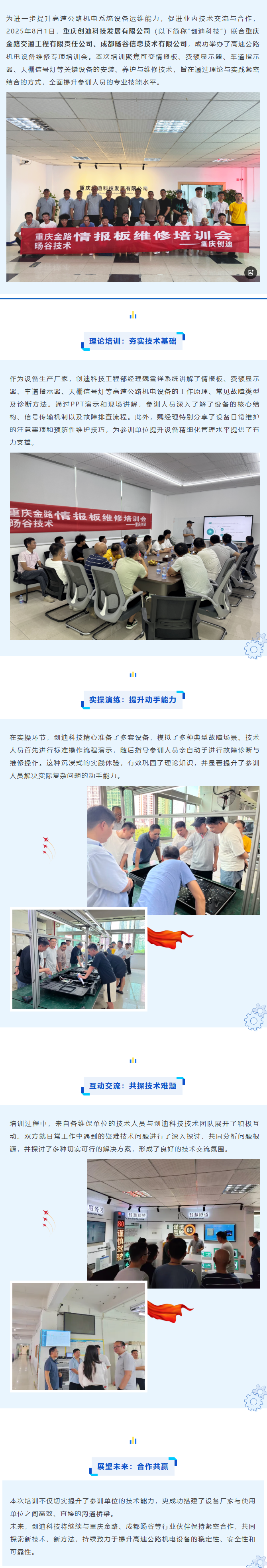 攜手共進,技術(shù)賦能丨重慶創(chuàng)迪科技與重慶金路、成都旸谷開展高速機電設(shè)備維修培訓(xùn)交流