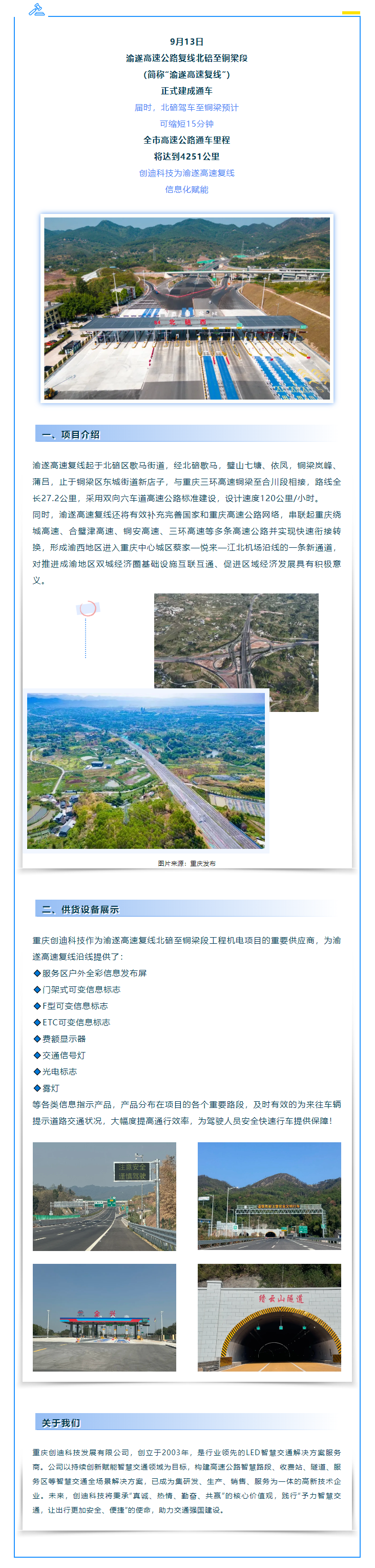 重慶創(chuàng)迪科技助力丨渝遂高速復線北碚至銅梁段項目建成通車!.