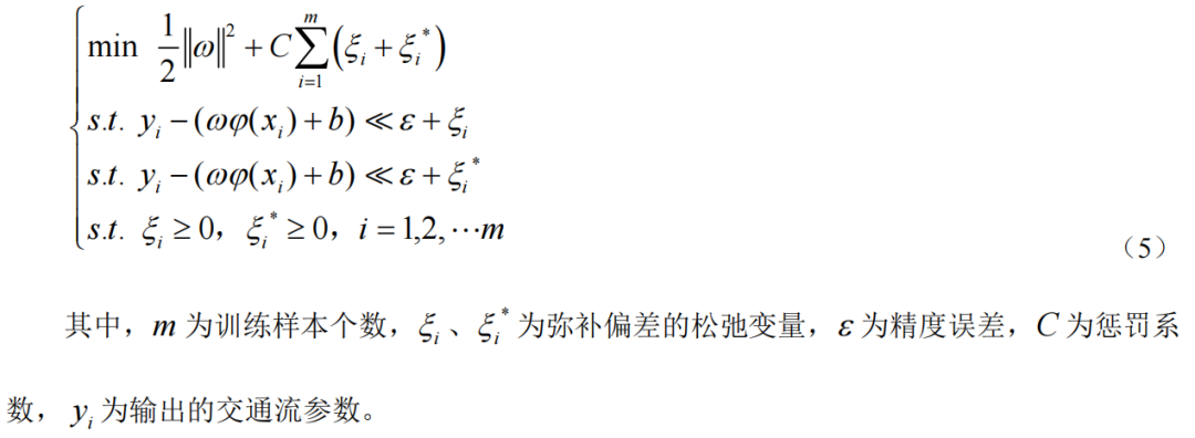 為非線性核函數(shù),b為偏差項(xiàng),f(x)為交通流的預(yù)測(cè)值。轉(zhuǎn)換SVR模型為: