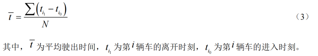 平均駛出時(shí)間是指所有車輛通過某路段所耗時(shí)間的平均值,計(jì)算公式如下: